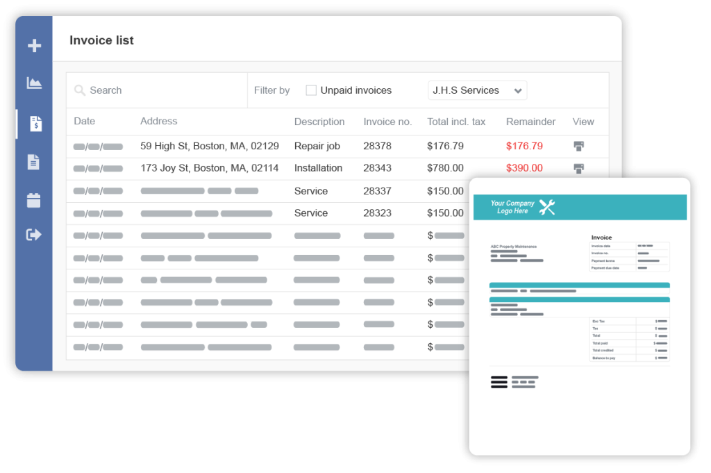 Get paid faster. Our plumbing invoicing software allows your technicians to generate a full, itemized invoice on-site and take payment immediately. Customers can also view and pay invoices online through their secure portal, dramatically improving your cash flow.